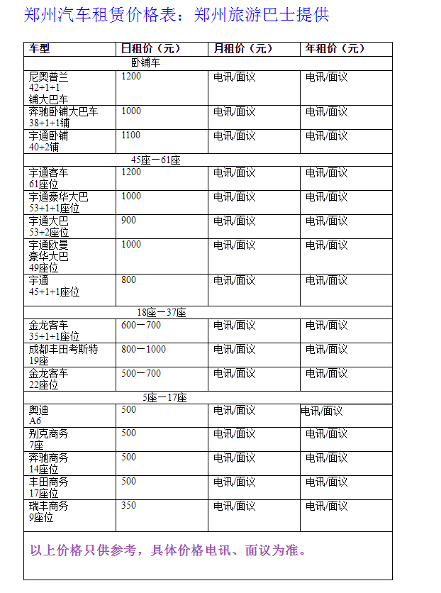 - 商務(wù)車(chē)租賃多少錢(qián)一天?選鄭州旅游大巴車(chē)租賃公司